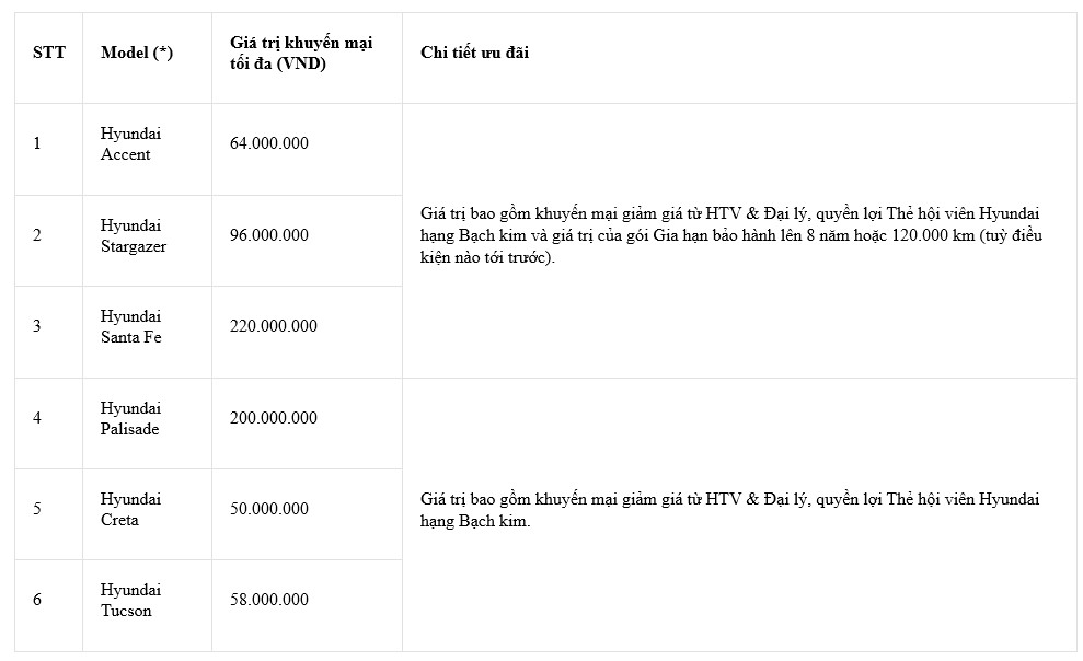 Chương trình khuyến mãi đặc biệt trong tháng 1 chính là minh chứng cho cam kết của Hyundai Thành Công Việt Nam trong việc đặt khách hàng lên hàng đầu. Những ưu đãi này không đơn thuần là giảm giá, mà còn thể hiện lời hứa của HTV về chất lượng xe sang trọng, trải nghiệm vận hành thoải mái và độ bền vượt trội của các mẫu xe Hyundai - giúp khách hàng hoàn toàn yên tâm cho mọi chặng đường.